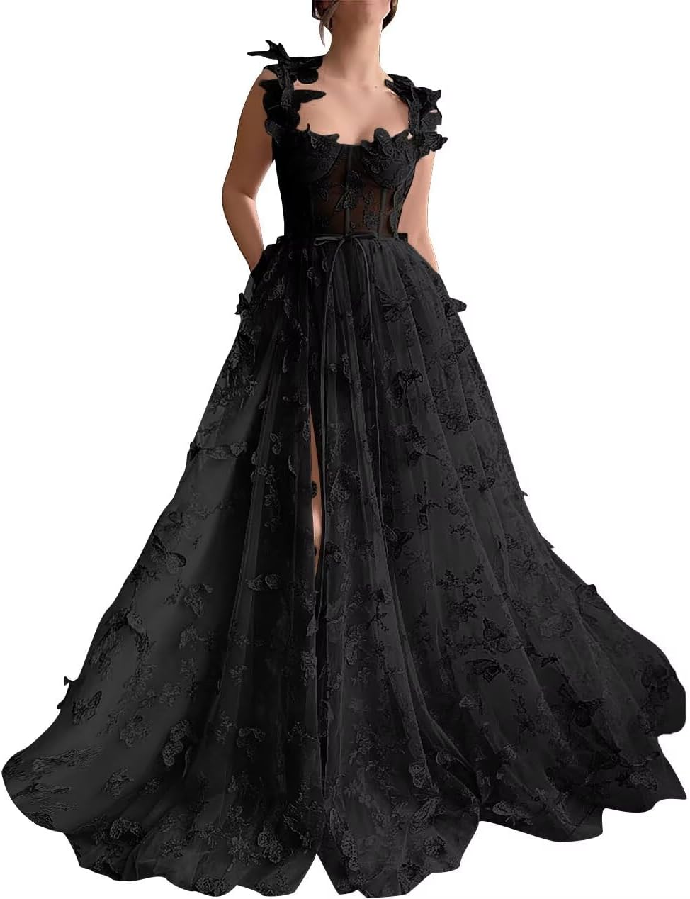 | Fabric Type | Fabric:Butterfly Tulle Corset Prom Dresses 2025 Long Ball Gown 3D Butterfly Spaghetti Strap Lace Applique Formal Dresses Long Prom Dresses for Women |